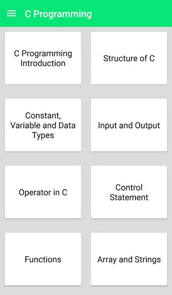 For easy learning of C Programming, it is divided into 11 chapters. Each chapter is defined separately. The user can easily choose a chapter and start learning.